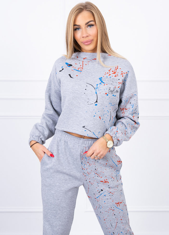 Dames Huispak Trainingspak Cropped Spetters Grijs