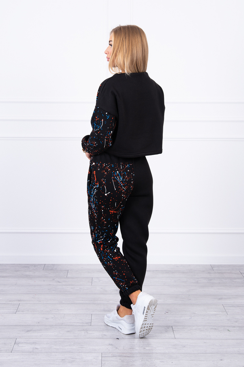 Dames Huispak Trainingspak Cropped Spetters Zwart